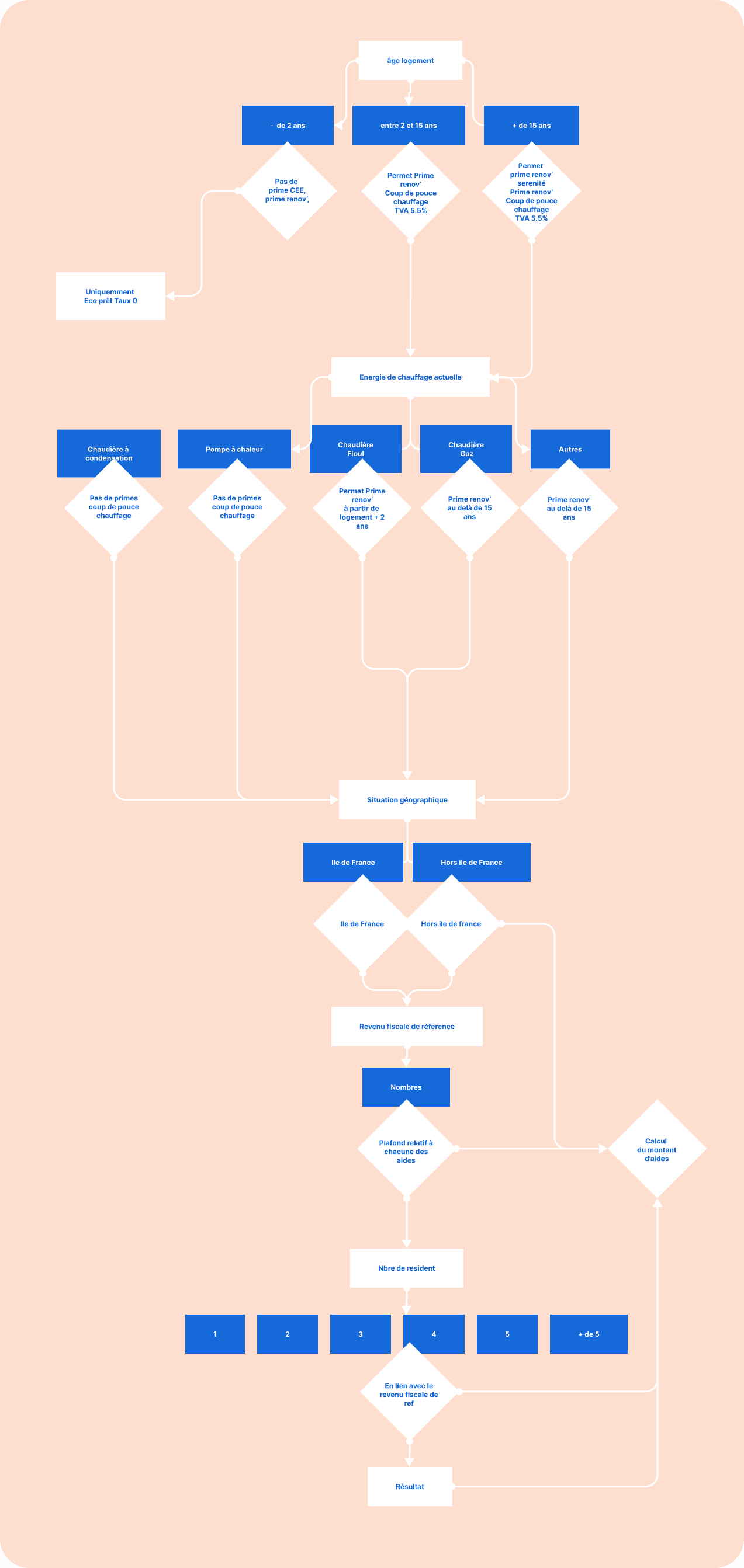 Notre objectif était de rendre accessible à un large public des informations cruciales sur les aides financières disponibles pour leurs projets de rénovation. Nous avons cherché à créer une solution qui permettrait à nos utilisateurs de comprendre facilement à quelles aides ils peuvent prétendre, malgré la complexité du sujet.